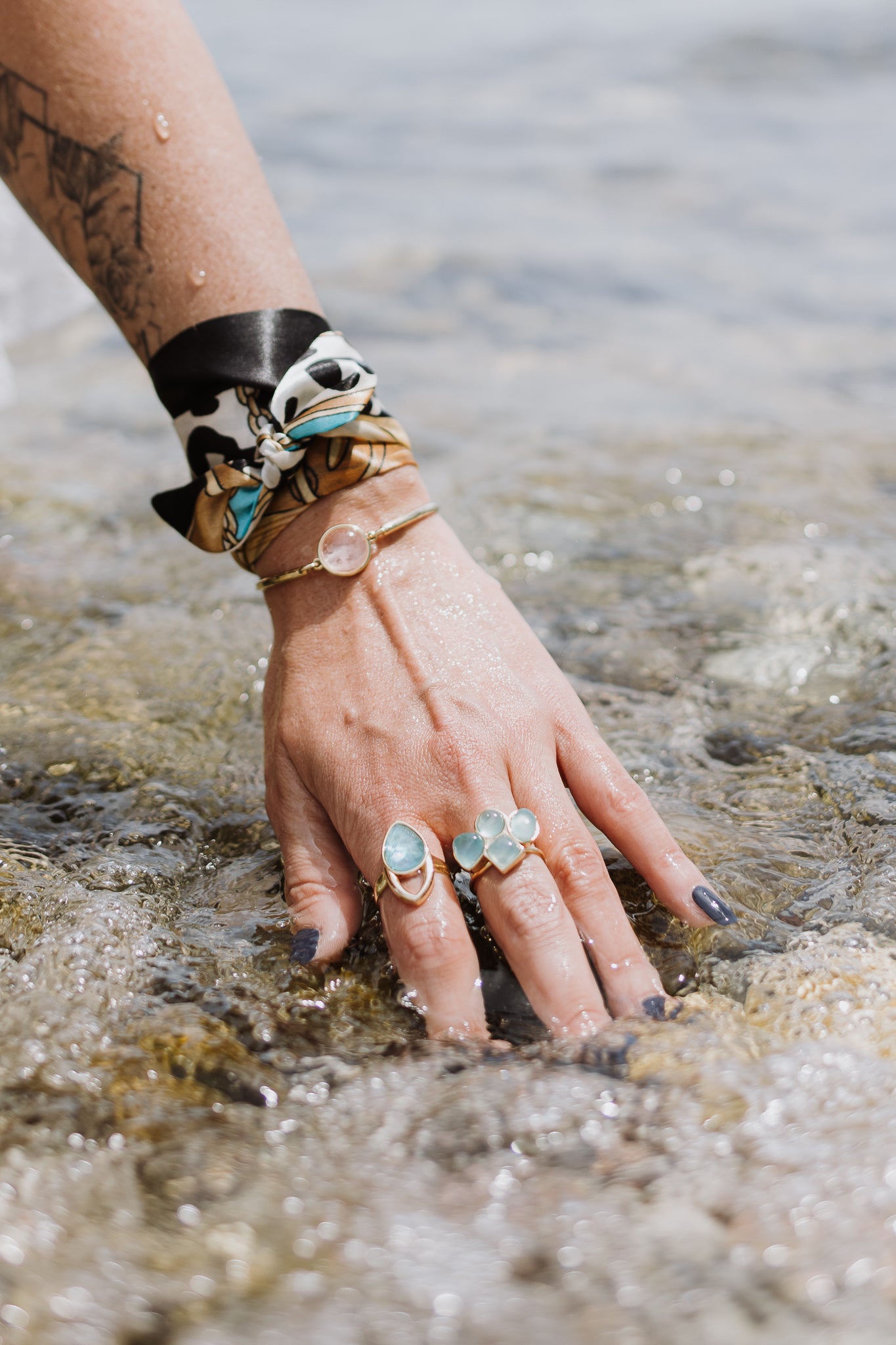 Anello di regolazione con pietre Agata blu cielo cabochon nelle forme ovale 6x8 mm, quadrato 6x6 mm, goccia 8x6 mm e tondo 6,5 mm. Puoi facilmente regolare l'anello dal numero 14 al numero 24.